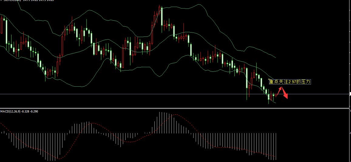 1激進者見白銀價格2.97附近,可進場做空,目標2.90附近。