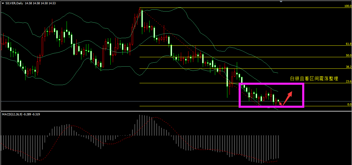 如上圖所示,白銀以高空為主,回落支撐附近做多。切忌盲目追漲殺跌!