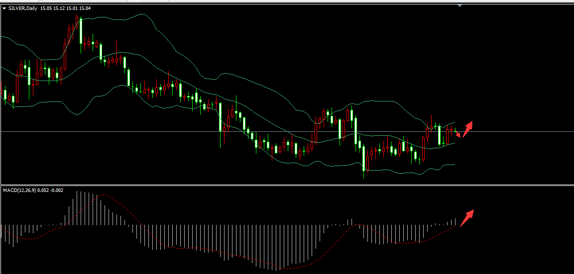 從日線圖來看,上個交易日收了一根小陰,布林帶有逐漸開口跡象,目前承壓于布林帶上軌,RSI勾頭向下,MACD紅色能量珠有進行多頭放量形態,日線的雙針探底以及十字星的轉勢已經很明顯說明了下方日線布林中軌附近買盤強烈,后期主要關注3.17一線阻擋,在未形成有效突破之前維持區間操作思路即可。 4小時線來看,現貨白銀目前處在3.12一線徘徊,布林帶三軌處于持平走勢,下方MACD附圖指標金叉走勢,單能量柱有所弱勢,KDJ和RSI指標均為死叉下行的走勢。