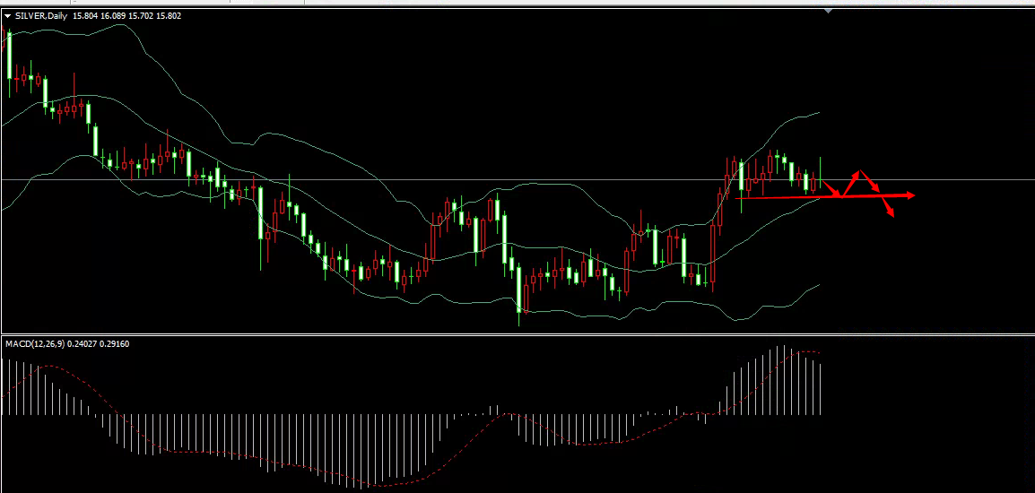 白銀在本周整體走勢---高位區間震蕩,但是從白銀日線走勢圖分析,目前日線附圖指標MACD快慢線在0軸上方已經死叉運行,日線級別有回落的風險,日線一旦跌破其布林中軌將擴大跌幅。下周白銀整體走勢還是逢高做空。