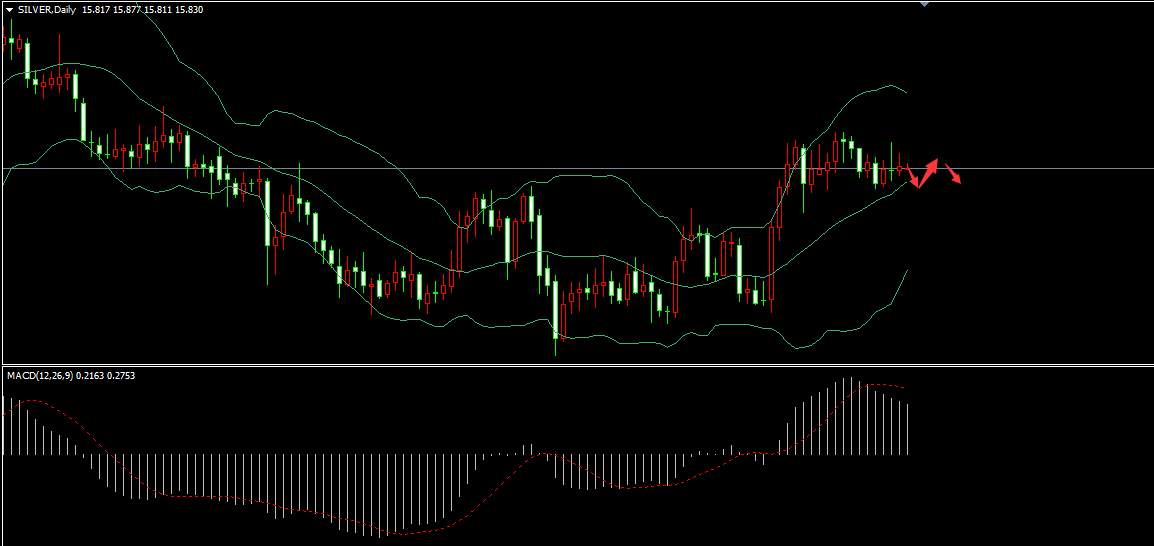 從日線來看,布林帶開口縮小。銀價(jià)位于布林帶中上軌運(yùn)行,MACD綠色動(dòng)能放量KDJ,RSJ來看都是位于一個(gè)多空爭奪的行情,從4小時(shí)線來看,MA均線在布林帶中軌上方MA5MA10密集之處,相信這里會(huì)是第一道阻力位,而支撐位則是在布林帶中軌與MA3之處,MACD來看白色有著向下勾頭的跡象,紅色動(dòng)能也釋放完畢,接近于零軸線,RSI呢走勢相對于來說比較平穩(wěn)。從短線小時(shí)線來看,現(xiàn)貨白銀在昨日周一以震蕩走勢告終,最終收于MA66均線上方,因而布林帶三軌持平走勢,個(gè)均線在度聚集中軌附近,暫且看來上方MA5和MA10均呈現(xiàn)死叉下垂形態(tài),而MACD指標(biāo)死叉在0軸附近弱勢下行,MTM動(dòng)力指標(biāo)也為之空頭走勢,短期看來銀價(jià)必有一波下行。