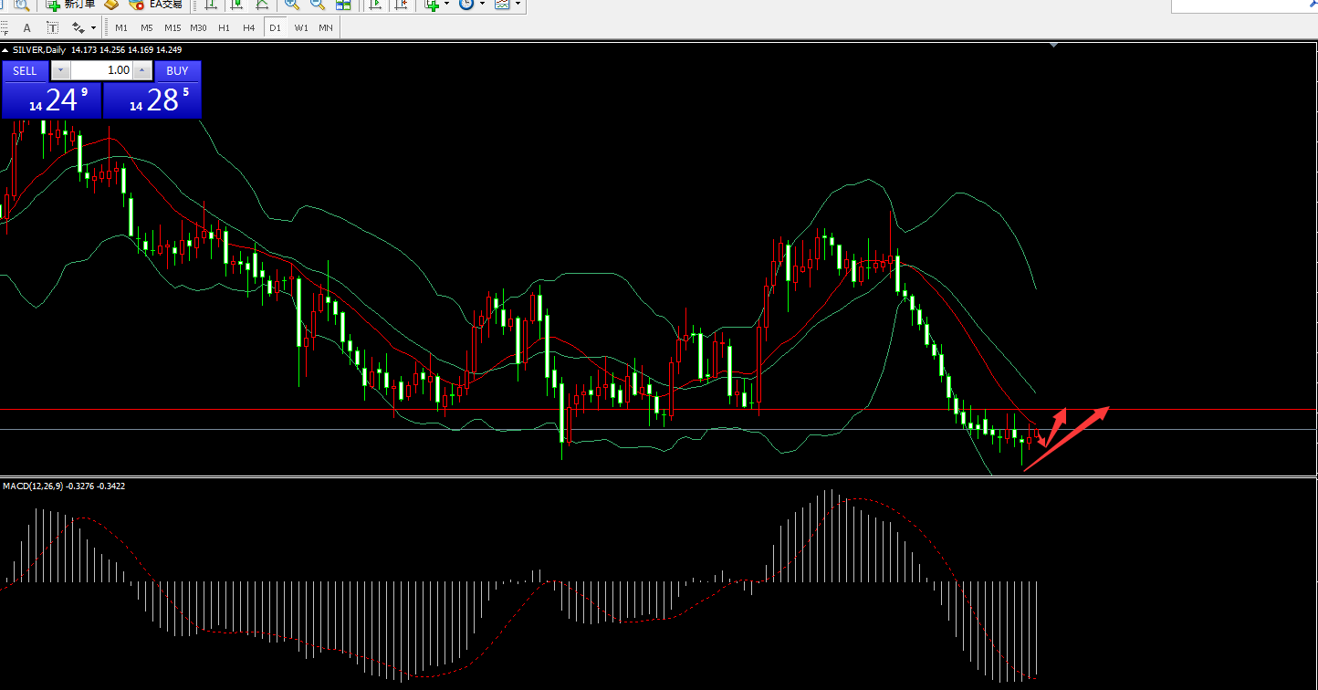 1、激進者見白銀價格2.97附近,可進場做空,目標2.90附近。