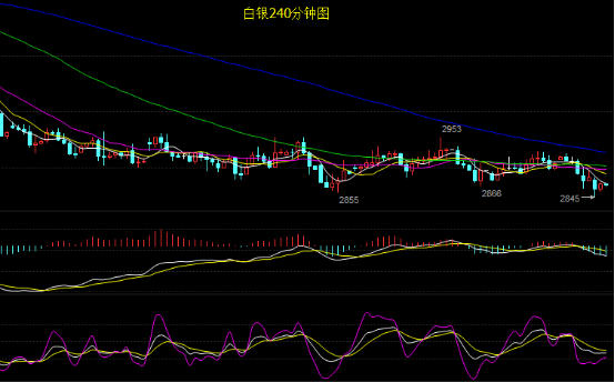 白銀雖然昨日下跌,但依然未打開下行通道,仍然處于2860-2960的寬幅震蕩。亞盤回落至2850附近后開始反彈,目前處于震蕩行情。從60分鐘級別來看,短期均線粘合,MACD綠色動能減弱,快慢線鉤底,從240分鐘級別來看,5日均線與10日均線死叉后,銀價沿著5日均線下行,MACD綠色動能增強,KDJ三線走平,指標偏中性。上方關注壓力2900、2930,下方關注2850、2820附近,區間操作。