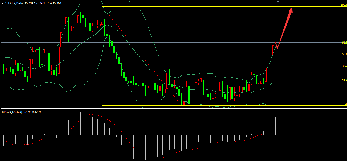 白銀昨日跟隨黃金上漲,突破關(guān)鍵阻力后一根大陽線拉升至3.27附近,這樣的收線情況看,今日的行情延續(xù)多。對比黃金,白銀還有補(bǔ)漲空間。