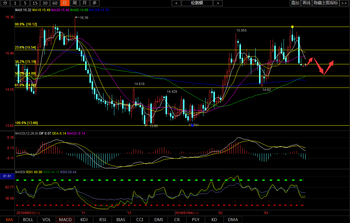 圖:白銀日K線(參考指標(biāo)MACD)