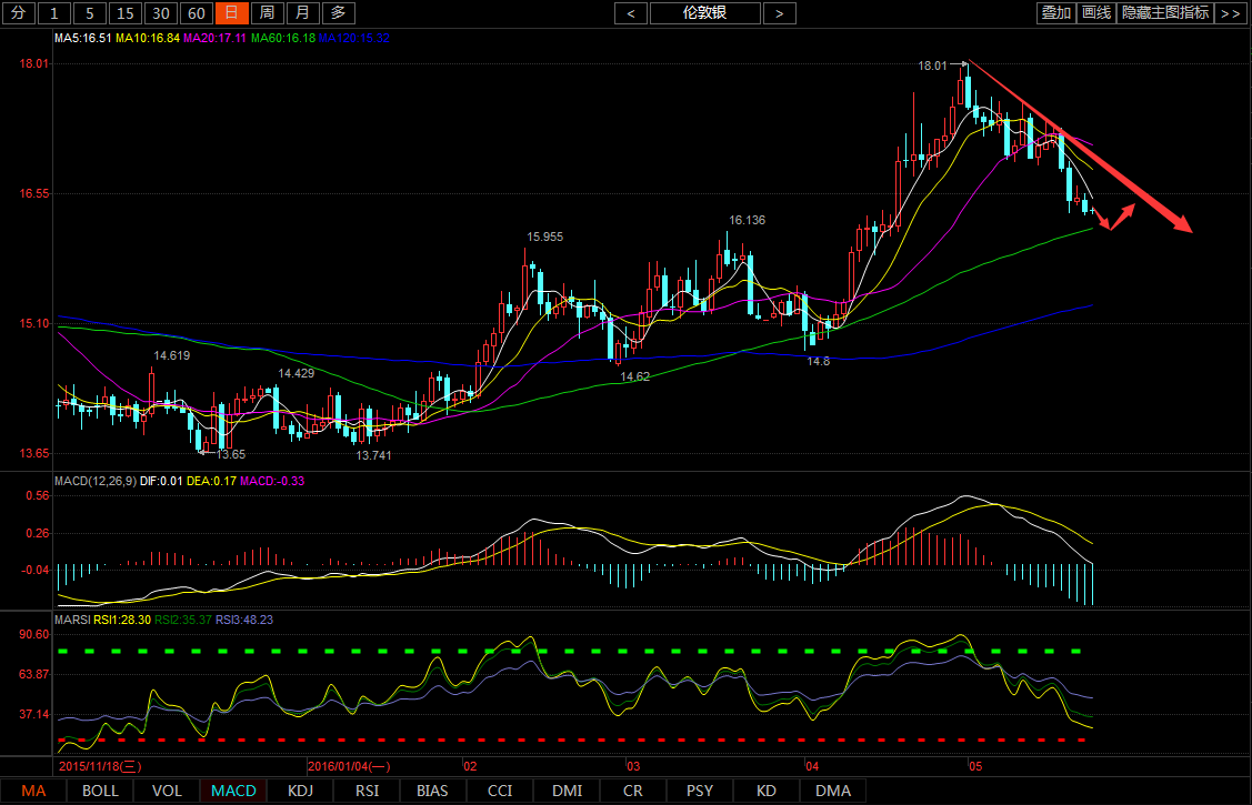 圖:白銀日K線(參考指標MACD)