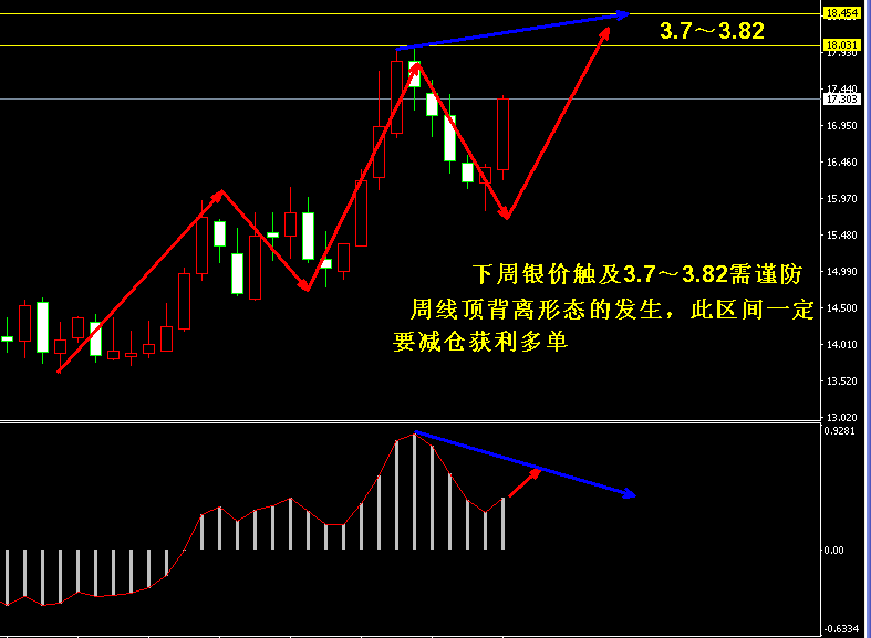 目前紙白銀價格是3.636元/克。本周紙白銀在突破企穩信號點3.49后延續拉升,目前行情再度回歸到主趨勢的上行格局,下周有望測試阻力3.67以及中線阻力帶3.7~3.82之間,投資者可在下周初銀價觸及上述點位后開始逐漸獲利離場。由于下周四凌晨美聯儲即將公布利率決議,雖然此次決議加息可能性很小,但當靴子落地后,投資者需謹防“買消息,賣事實”的現象發生。配合技術面來看,銀價非常有可能在周四前夕觸及重要阻力,屆時消息面雖然利多,但由于已經提前消化,投資市場可能出現在高位集中獲利離場的情況,從而產生打壓銀價回落的風險。如下圖所示為紙白銀4小時周期走勢圖,從短線形態可以看出,本周后半段銀價雖然緩慢上行,但買盤力量已經明顯減弱,不僅僅表現在拉升幅度和力度上,動能指標亦出現了明顯的收量現象,暗示當前多頭力量正表現不足。投資者需謹防下周銀價在觸及阻力3.67和3.7~3.82后的沖高回落風險,建議投資者目前切勿盲目追多,若銀價重新回歸至3.6下方,仍可輕倉分批加倉多單,但3.6上方則主要以高拋減倉為主,繼續上行空間真逐漸縮小。綜合分析,本周銀價上漲的誘因來自于投資者對美聯儲預期不加息產生的結果,當下周美聯儲宣布這一事實后,行情或不會有太大表現,其根本原因就是,市場已經提前消化了這一預期,導致真正結果公布后,市場可能出現集中獲利了結的反向波動。正如我們之前所說,當前上方重要阻力為中長線壓力帶3.7~3.82,只有銀價完全突破3.82后才能為下半年行情打開上行空間;若銀價再度于3.7~3.82沖高回落,需謹防行情出現長時間的大區間震蕩。下周投資者需在美聯儲決議個公布之前,擇機減倉,以降低消息帶來的風險。決議公布后,不能僅僅根據消息而操作,依舊要配合技術面指引。以上建議僅供參考, 不作為下單依據。![]()