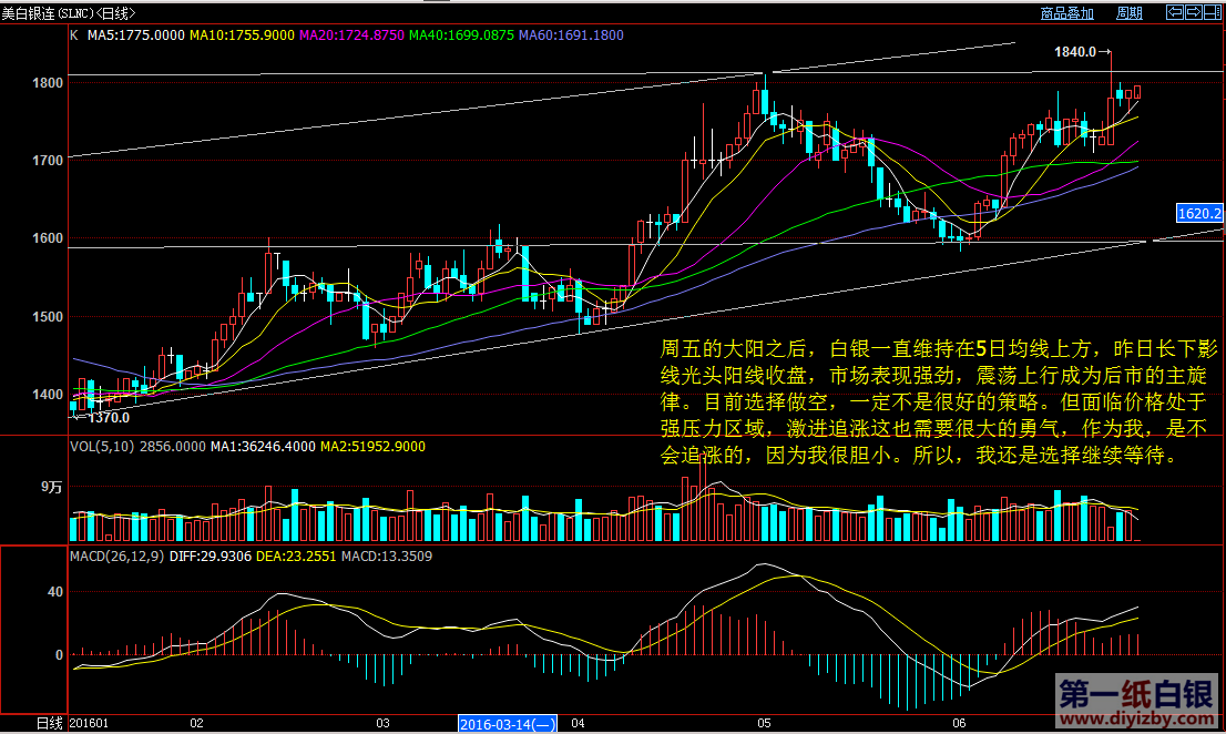 對紙白銀感興趣的朋友可以常來“第一紙白銀分析網(wǎng)”逛逛,我們每天會分析最新的紙白銀價格走勢。 |