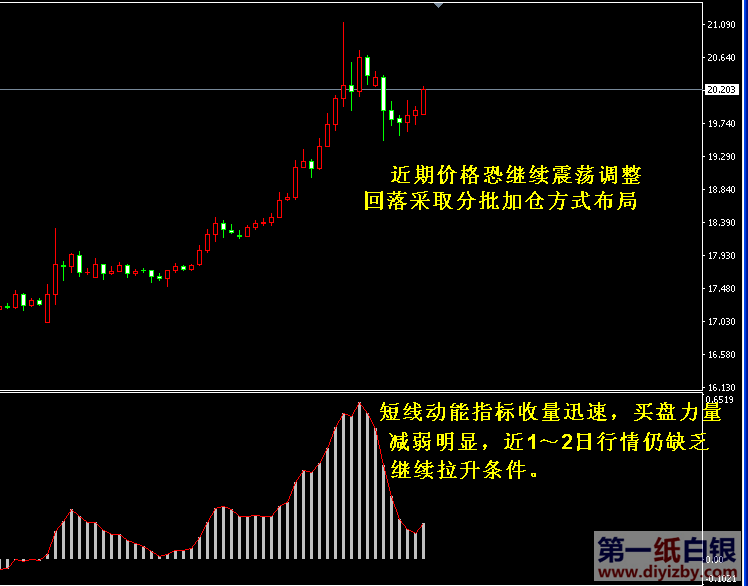 目前紙白銀價(jià)格是4.326元/克。昨日紙白銀再度出現(xiàn)下跌,雖最終行情反彈收陽(yáng),但短期內(nèi)市場(chǎng)已經(jīng)顯現(xiàn)出空頭拋壓的嚴(yán)重性,日內(nèi)走勢(shì)仍建議在高位減倉(cāng)多單后,采取回落分批加倉(cāng)的方式布局。如下圖所示為紙白銀4小時(shí)周期走勢(shì)圖,昨日行情下跌后,動(dòng)能指標(biāo)發(fā)生快速收量,短期內(nèi)買(mǎi)盤(pán)力量減弱明顯,近期行情恐繼續(xù)通過(guò)震蕩調(diào)整的方式蓄力修復(fù),建議投資者仍保持回落分批加倉(cāng)多單的策略,抓住回落做多的機(jī)會(huì),而后耐心等待新一輪上漲啟動(dòng)。正如我們昨日所說(shuō),由于此輪銀價(jià)主要以補(bǔ)漲為主,前期行情大幅拉升幅度超越黃金,而近期銀價(jià)在4.43上方?jīng)_高回落,已經(jīng)完成了補(bǔ)漲走勢(shì)。后市貴金屬市場(chǎng)預(yù)計(jì)仍以黃金作為主要參考標(biāo)準(zhǔn),等待金價(jià)走出丈夫后,銀價(jià)方能緊跟其后。換言之,近期白銀恐難再現(xiàn)之前單邊上漲行情,投資者應(yīng)保持理性加倉(cāng)策略,拉開(kāi)均價(jià)分批進(jìn)場(chǎng),切勿在同一點(diǎn)位頻繁補(bǔ)倉(cāng)。本周是非農(nóng)周,近期行情預(yù)計(jì)陷入震蕩以等待最終非農(nóng)數(shù)據(jù)出爐指引方向,若投資者手中持有重倉(cāng)多單,可嘗試在靠近3.4附近繼續(xù)減倉(cāng),在3.3下方分批加倉(cāng),留有一部分倉(cāng)位等待非農(nóng)數(shù)據(jù)出爐后操作。綜合分析,日內(nèi)行情不排除繼續(xù)通過(guò)空中加油的方式蓄力,整體趨勢(shì)依舊看漲,但短線暫時(shí)缺乏強(qiáng)勢(shì)拉升需求,投資者可在行情高位震蕩時(shí)期分批買(mǎi)入多單。若今日銀價(jià)繼續(xù)回落,則投資者重點(diǎn)關(guān)注下方4.17、4.13、4.11、4.09、4.04、3.98、3.92幾線,在上述支撐位可著重加倉(cāng),其中超短線強(qiáng)支撐位于4.17和4.11兩線。(注: 由于紙白銀價(jià)格是國(guó)際銀價(jià)換算而來(lái),而換算過(guò)程中涉及到人民幣對(duì)美元匯率的變化,即使在國(guó)際銀價(jià)不變化的情況下,如果人民幣貶值或升值,也會(huì)導(dǎo)致紙白銀價(jià) 格出現(xiàn)變動(dòng)。因此,我們的分析只采用最新的國(guó)際銀價(jià)對(duì)應(yīng)的人民幣白銀價(jià)格,如與過(guò)去分析價(jià)格有出入, 投資者應(yīng)知曉其原因。)