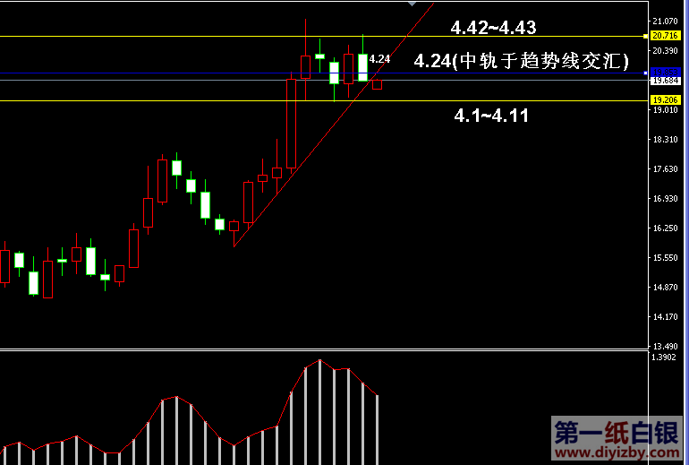 技術(shù)僅僅是基于概率論和統(tǒng)計(jì)學(xué)的一種綜合分析手段,絕非預(yù)測(cè)。所以技術(shù)分析是在考慮做好止損的情況下去博取大概率事件,投資不可過(guò)于迷信技術(shù)分析。(短線(xiàn)操作請(qǐng)一定做好止損,一旦被損,代表分析師基于概率和統(tǒng)計(jì)的技術(shù)分析不適用于當(dāng)前行情) 1、紙白銀短線(xiàn)看點(diǎn)位,中線(xiàn)做方向。 2、以上所有價(jià)格為工商銀行買(mǎi)入價(jià),即紙白銀低價(jià)。進(jìn)倉(cāng)點(diǎn)位要再加0.04,出倉(cāng)則不要。 3、第一紙白銀給出的所有建議僅供投資者參考,不作為下單絕對(duì)依據(jù),切勿過(guò)于依賴(lài)。 4、北京時(shí)間08:36發(fā)布此文章。 5、上一交易日白銀價(jià)格分析情況:(8月5日)紙白銀非農(nóng)走勢(shì)分析與操作策略