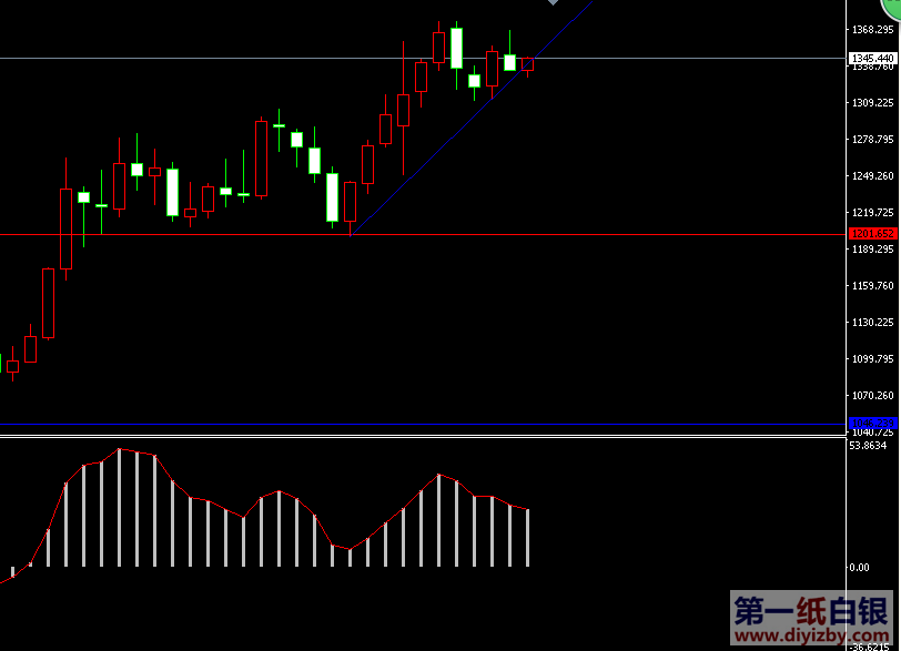 提醒:同時參考黃金走勢來看,金價已經提前于銀價實現周線阻力突破,暗示未來黃金和白銀雙雙繼續在區間內強勢震蕩的概率較大。如下圖所示為黃金周線走勢圖,金價成功突破了周趨勢線反向壓制,目前行情正逐漸轉強,后市將有望再度考驗前期高點,由此也將引領白銀價格走入強勢震蕩。后市投資者亦可首先關注黃金關于高點1374的突破情況,在確認金價突破前高后,銀價將有望突破區間高點4.43和前高4.52的概率大大增加。 技術僅僅是基于概率論和統計學的一種綜合分析手段,絕非預測。所以技術分析是在考慮做好止損的情況下去博取大概率事件,投資不可過于迷信技術分析。(短線操作請一定做好止損,一旦被損,代表分析師基于概率和統計的技術分析不適用于當前行情) 1、紙白銀短線看點位,中線做方向。 2、以上所有價格為工商銀行買入價,即紙白銀低價。進倉點位要再加0.04,出倉則不要。 3、第一紙白銀給出的所有建議僅供投資者參考,不作為下單絕對依據,切勿過于依賴。 4、北京時間08:31發布此文章。 5、上一交易日白銀價格分析情況:(8月9日)紙白銀震蕩行情持續 關注強弱分水嶺突破