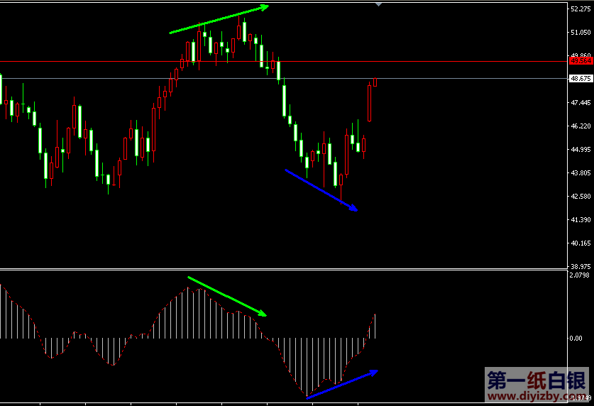 今日下方關(guān)鍵支撐3.6附近(關(guān)注美元16.35美元附近);今日上方關(guān)鍵阻力3.73~3.76(16.9~17美元)、3.8(17.2美元)、3.84(17.4美元)、3.9(17.69美元)、3.97(18美元)、4.05(18.37美元)。 原油:如下圖所示為原油日線走勢圖,過去油價曾因頂背離而出現(xiàn)一輪大幅下跌,近期行情又因底背離而出現(xiàn)大幅反彈,走勢特征十分明顯,大趨勢因周線三重頂(52美元附近)的緣故,油價暫未向上打開空間,而短線走勢因底背離超賣的緣故,油價仍存反彈空間。近期原油投資者可關(guān)注49.5美元附近的強阻力,此處曾是油價大幅下跌的重要壓力位,遭遇該點位后,短期多頭或出現(xiàn)一輪獲利離場,加之此處空頭壓力較重,建議原油投資者在49.5附近做多單獲利了結(jié),不可做空。后市原油走勢偏向中線看多行情,在突破三重頂52后將向上打開空間。