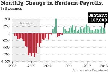 美國1月非農(nóng)就業(yè)人數(shù)增加15.7萬,預(yù)期增加16.5萬,12月數(shù)值從15.5萬修正為19.6萬。