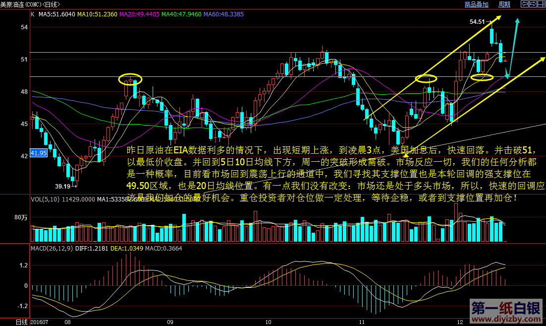 今日美聯(lián)儲的加息,沒有引發(fā)白銀出現(xiàn)暴跌,更沒有靴子落地后的報復(fù)性反彈,市場表現(xiàn)較為平淡。不過盤面上來看銀價下跌無空間,上漲無動能,多空雙方都顯得十分謹慎。目前行情步入到以時間換取空間的格局,我們更加確定了在白銀下跌中逐步介入多單應(yīng)該是比較好的策略。 短期內(nèi)來看銀價下跌可能會成為主要波動方向,投資者也會面臨一定的短期虧損,但中期銀價下跌空間較小,后市上方空間定然比下方空間大,因此建議做多而不做空。空單無利潤,進場無意義。 白銀投資者回落分批買入,在16.7 16.3進場,止損16下方。 ![]() 有一點可以肯定,原油市場還是多頭占優(yōu),所以快速回調(diào)應(yīng)該是加倉的最好機會,重倉投資者對倉位做一定處理即可,等待企穩(wěn)或支撐再加倉。