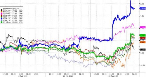 美聯儲剛公布的1月29日-30日召開的FOMC會議紀要顯示,越來越多的FOMC委員們憂慮美聯儲的開放式購債措施帶來的風險,這些風險包括當美聯儲最終出售資產時會遇到困難、損害金融穩定、當利率上行時金融市場的運轉以及可能的資本損失。支持提前放緩或結束QE的委員較12月出現了上升。美聯儲會議紀要引發市場強烈反應,美股、黃金大跌,美元飆升。