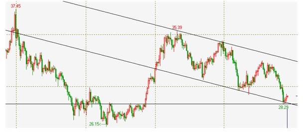 白銀方面上漲1.71%,報收在5884,白銀在走到28.29位置上下之后,連續三天出現反彈走勢,并在前交易時段這種反彈的走勢力度開始加強,這樣的走勢除了技術面上因技術支撐而引起的上漲之外,基本面的因素變化以及不確定的市場預期開始增強也是有著直接的影響因素的。從最近幾個月來的白銀走勢來看,白銀呈現整體性重心不斷下移,并在其間伴隨不斷的階段性修復和反彈的走勢,整體偏空的走勢和全球性的經濟復蘇預期增強直接密切相關,但是這種預期并不是一直都清晰而明朗的,隨著時間的推移和市場的發展,種種階段性的不確定因素也在時時出現,白銀這種整體性重心下移并伴隨這階段性反復的走勢,也是這種市場實際發展情況的對應體現。