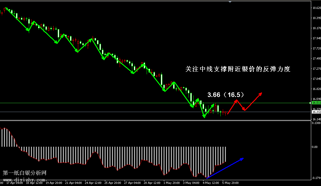 今日下方關鍵支撐位3.59(16.2)、3.52(15.9)、3.45(15.6);今日上方關鍵阻3.79(17.1)、3.82(17.25)、3.87(18.5)、3.9(17.65)、3.96(17.9)、4(18.1)、4.07(18.4)、4.14(18.7)、4.18(19)。 技術僅僅是基于概率論和統計學的一種綜合分析手段,絕非預測。所以技術分析是在考慮做好止損的情況下去博取大概率事件,投資不可過于迷信技術分析。(短線操作請一定做好止損,一旦被損,代表分析師基于概率和統計的技術分析不適用于當前行情) 1、紙白銀短線看點位,中線做方向。 2、以上所有價格為工商銀行買入價,即紙白銀低價。進倉點位要再加0.04,出倉則不要。 3、第一紙白銀給出的所有建議僅供投資者參考,不作為下單絕對依據,切勿過于依賴。 4、北京時間07:00發布此文章。 5、上一交易日白銀價格分析情況:(5月5日)白銀中線支撐附近徘徊 關注非農指引方向