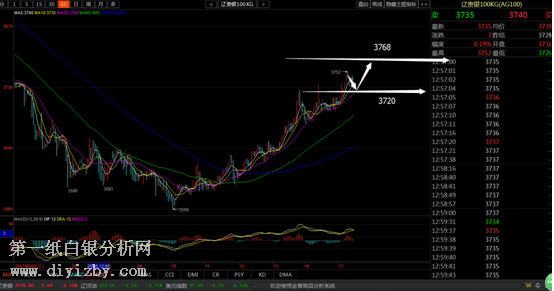 行情回顧: 白銀周三亞市早盤延續此前升勢,并觸及3752元/千克的兩周新高。周二因美國政治憂慮以及弱于預期的房屋數據重壓美元,銀價當天連續第五個交易日收高,盤中最高觸及3736元/千克,周三晚間投資者仍需關注以歐美為主的經濟數據表現。 技術分析: 昨日現貨白銀市場延續拉升趨勢,行情早盤小幅高開在3688的位置后行情就開始上行過程,歐盤時段區間整理后美盤盤中開始拉升,最高觸及到了3736的位置后整理,最終日線收線在了3727的位置后,日線以一根基本飽和的大陽線收尾,而這樣的大陽線收尾后,今日的行情還需低多,今日重點關注16.8(3725)的支撐,上看關注17(3768)的阻力 ![]() 白銀可在3720附近做多,目標3760,損3690下方,空單可在3770附近進場,目標3730,損3800交易中請嚴格止盈止損,建議僅供參考! 第一紙白銀分析網(m.maomaopao.com)北京時間10:01監測數據,工行紙白銀價格3.734元/克。 本文作者昨日白銀價格分析請看:5月17日白銀價格日內交易計劃