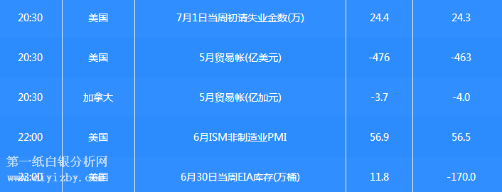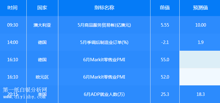 紐約時段,市場又迎來一系列美國重磅數據的考驗,這些數據中包括美國的就業數據小非農ADP和初請失業金人數,這兩項就業數據會給周五的非農數據提供重要的指引。此外,美國的貿易帳、ISM非制造業PMI都能給市場帶來一定的影響。時段內,美聯儲理事鮑威爾還會發表言論,投資者稍加留意即可。