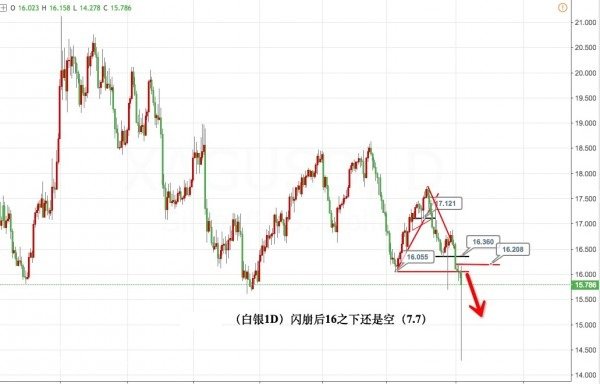 2:閃崩后的白銀似乎空頭更加明確,如圖前低16徹底破位,且從支撐轉變為阻力!