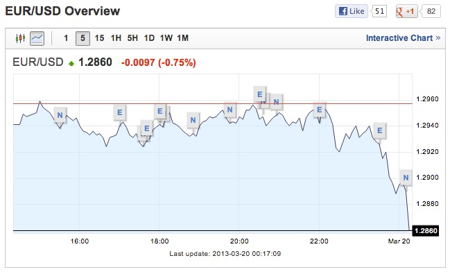 更新一:北京時間3月20日凌晨2點20分 塞浦路斯議會投票否決存款稅:36票反對,19票棄權,0票同意。 開放歐洲認為,歐盟很可能會給塞浦路斯更多時間尋找解決58億歐元資金缺口的問題,包括再次就存款稅舉行議會投票。 塞浦路斯財長將在周三向俄羅斯提交一份計劃,希望俄羅斯拯救其銀行部門。 塞浦路斯官方表示,財長Michalis Sarris在企業代表的陪同下,準備與俄羅斯做一筆交易。交易包括,對俄羅斯人在塞浦路斯的存款征收20%-30%的存款稅,這會導致俄羅斯人損失數十億美元。作為交換,塞浦路斯將會給予俄羅斯未來天然氣開采企業的股權和一些能源部門額外的戰略性利益,同時俄羅斯投資者將控制塞浦路斯銀行的董事會。 然而,現在看來這筆交易的成功幾率并不大。在塞浦路斯財長出訪俄羅斯前,俄羅斯發言人就表示:“沒有細節是不可能展開談判的。” 塞浦路斯總統暗示,政府正在制定“方案B”。他表示:“我們有我們的計劃。” 德國發言人態度堅決,表示絕不放松救助條件。 北京時間3月19日晚11點30分 據消息人士表示,塞浦路斯財長提交辭職申請。 隨后媒體報道塞浦路斯總統Anastasiades拒絕財長辭職申請。 北京時間周二晚上約12點傳出突發消息,塞浦路斯議會準備就存款稅投票,據道瓊斯報道,之前愿意投贊成票的執政黨將投棄權票,這意味著沒有議員愿意支持存款稅。 歐元下跌,兌美元跌破1.29