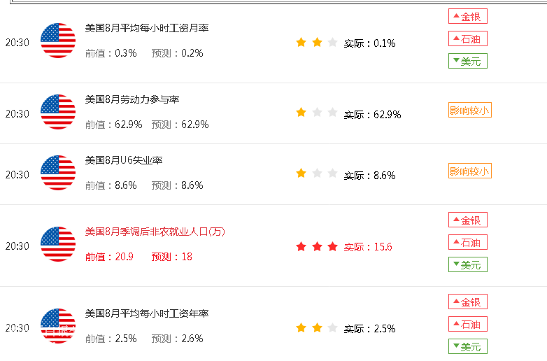 美國8月非農(nóng)大幅低于預(yù)期,僅新增15.6萬,遠(yuǎn)低于預(yù)期的18萬,同樣遠(yuǎn)低于前值(20.9萬)。 美國8月平均每小時工資環(huán)比 0.1%,預(yù)期 0.2%,前值 0.3%。 美國8月平均每周工時 34.4,預(yù)期 34.5,前值 34.5。 美國8月平均每小時工資同比 2.5%,預(yù)期 2.6%,前值 2.5%。 美國8月失業(yè)率回升至4.4%,高于預(yù)期(4.3%)和前值(4.3%)。 美國8月勞動力參與率持平于62.9%。 其中,8月私營部門就業(yè)人口變動 16.5萬,預(yù)期 17.2萬,前值 20.5萬。制造業(yè)就業(yè)人口變動 3.6萬,預(yù)期 0.8萬,前值 1.6萬。 非農(nóng)數(shù)據(jù)和分項(xiàng)指標(biāo)呈現(xiàn)清一色利多貴金屬,金銀價格在數(shù)據(jù)公布后大幅上漲。 美國勞工部:颶風(fēng)“哈維”對8月非農(nóng)就業(yè)和失業(yè)數(shù)據(jù)沒有明顯影響。家庭調(diào)查數(shù)據(jù)的收集在颶風(fēng)前已經(jīng)完成,而企業(yè)調(diào)查數(shù)據(jù)的收集在颶風(fēng)前也基本完成,全國和受影響地區(qū)的收集率均處于正常區(qū)間。 “債王”格羅斯:本次非農(nóng)數(shù)據(jù)表現(xiàn)疲弱。預(yù)計美國的預(yù)算赤字將增加。 路透評美國8月非農(nóng)數(shù)據(jù):美國8月非農(nóng)就業(yè)報告不及預(yù)期,時薪月率出現(xiàn)下降;美國8月新增就業(yè)人數(shù)僅錄得15.6萬人,不論是失業(yè)率還是時薪月率均不及預(yù)期,8月非農(nóng)就業(yè)減速;反映出合格勞動者數(shù)量短缺,雇主們雖有職位空缺卻招不到人。 【華爾街日報評美國8月非農(nóng)數(shù)據(jù)】美國8月失業(yè)率為4.4%,雖處于歷史最低水平,但較7月4.3%有小幅度上升。就業(yè)報告顯示休閑娛樂行業(yè)與酒店行業(yè)雇傭數(shù)量大幅減少,政府雇員數(shù)量連續(xù)兩個月錄得減少。私有企業(yè)平均每小時工資較上月小幅下降,但整體保持在固定的趨勢。 數(shù)據(jù)公布后,美聯(lián)儲12月加息預(yù)期有所下降。 據(jù)CME“美聯(lián)儲觀察”:美聯(lián)儲9月加息25個基點(diǎn)至1.25%-1.5%區(qū)間的概率為0%,12月加息至該區(qū)間的概率為41.1%。非農(nóng)后12月加息至該區(qū)間的概率降低為36.2%。 更多紙白銀相關(guān)新聞?wù)埧矗?/span>紙白銀行情新聞