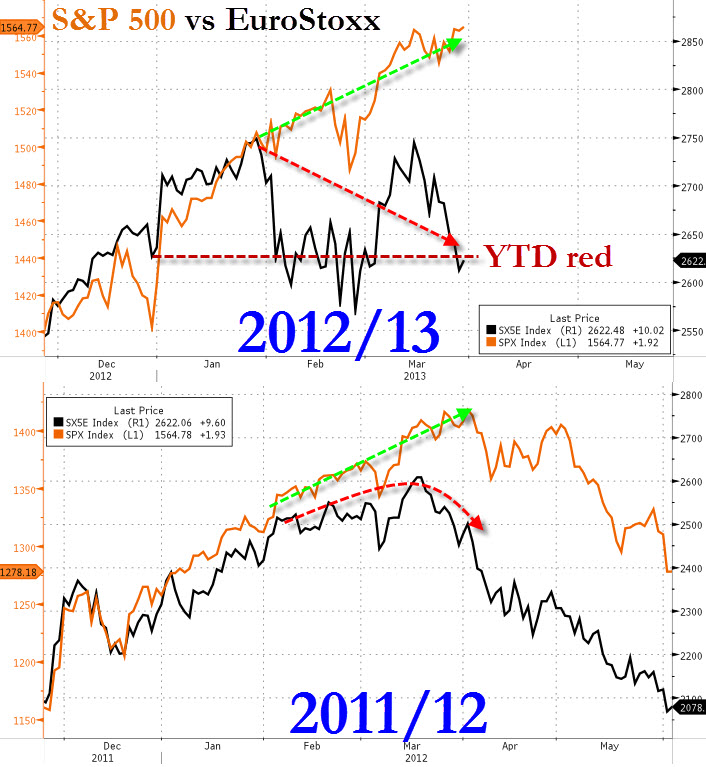8、歐元區(qū)斯托克50指數(shù)第一季度收于負值區(qū)。這種時候一定要拉著老樓上的標普500來比劃兩下。