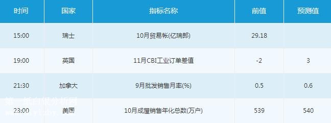 美國(guó)時(shí)段,投資者需關(guān)注23:00公布的美國(guó)10月成屋銷售年化總數(shù)。
