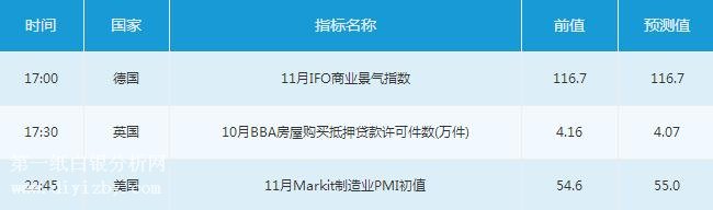 美國時段,投資者需關注22:45公布的美國11月Markit制造業PMI初值。