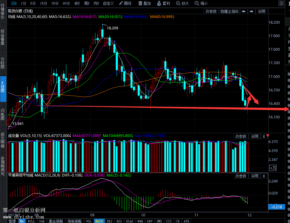 圖:白銀日K線(參考指標(biāo)MACD)