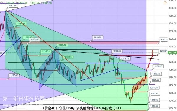 1:黃金:周二回撤1298-1300區(qū)域多,止損1293,目標1306-1313