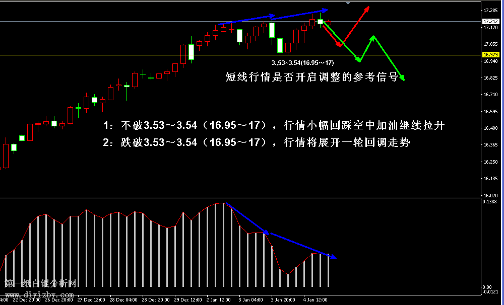 2、以上所有價格為工商銀行買入價,即紙白銀低價。進倉點位要再加0.04,出倉則不要。 3、第一紙白銀給出的所有建議僅供投資者參考,不作為下單絕對依據,切勿過于依賴。 4、北京時間09:05發布此文章。 5、上一交易日白銀價格分析情況:(1月4日)白銀短線謹防回踩風險 大趨勢看漲仍不變