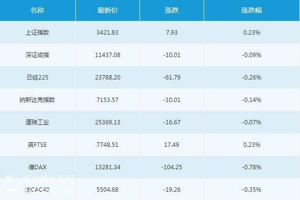 道瓊斯工業平均指數周三收盤下跌16.67點,跌幅0.07%,報25369.13點;標普500指數周三收盤下跌3.08點,跌幅0.11%,報2748.22點;納斯達克指數周三收盤下跌10.01點,跌幅0.14%,報7153.57點。