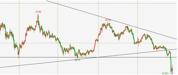 就技術(shù)面而言,白銀在前交易時(shí)段的走勢是在暴跌之后較為典型的震蕩走勢,市場在反彈稍有停歇之后,原有的空方趨勢和市場情緒再度出現(xiàn),盤中一度下跌3%以上就是這種市場心態(tài)的反應(yīng),但是這種下跌在接近前期低點(diǎn)的附近再度被市場拉起,這樣的走勢也說明了市場的短線承接能力在逐漸的增強(qiáng),當(dāng)然這種短線的承接能力增強(qiáng)在很大程度上是基于黃金的相對穩(wěn)定的走勢,就目前小周期看,白銀短線的反彈仍有繼續(xù)發(fā)揮的空間,震蕩向上的概率偏大,但是整體看目前的階段性修正仍屬于空頭態(tài)勢下的短線修正。