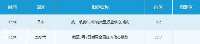 周一(3月12日)投資者需關注07:50公布的日本第一季度BSI所有大型行業信心指數,以及22:00公布的加拿大截至3月9日當周全國經濟信心指數。