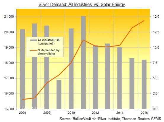 雖然一些公司試圖用銅來代替白銀,但似乎這樣舉措能起到的效果十分有限。這樣的研發工作是為了應對5年前白銀價格的上漲。在我看來,這樣的措施收效甚微,這表明在太陽能產業中,白銀被徹底取代的可能性相當低。