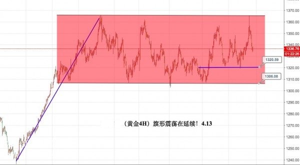 2:如圖旗形震蕩的關(guān)鍵區(qū)間在1306-1366,而經(jīng)歷了周三的強(qiáng)勢(shì)沖高測(cè)試上邊線的壓制后目前回落處于中間價(jià)格,所以接下來(lái)繼續(xù)向下看旗形震蕩的下邊線1306區(qū)域的支撐!