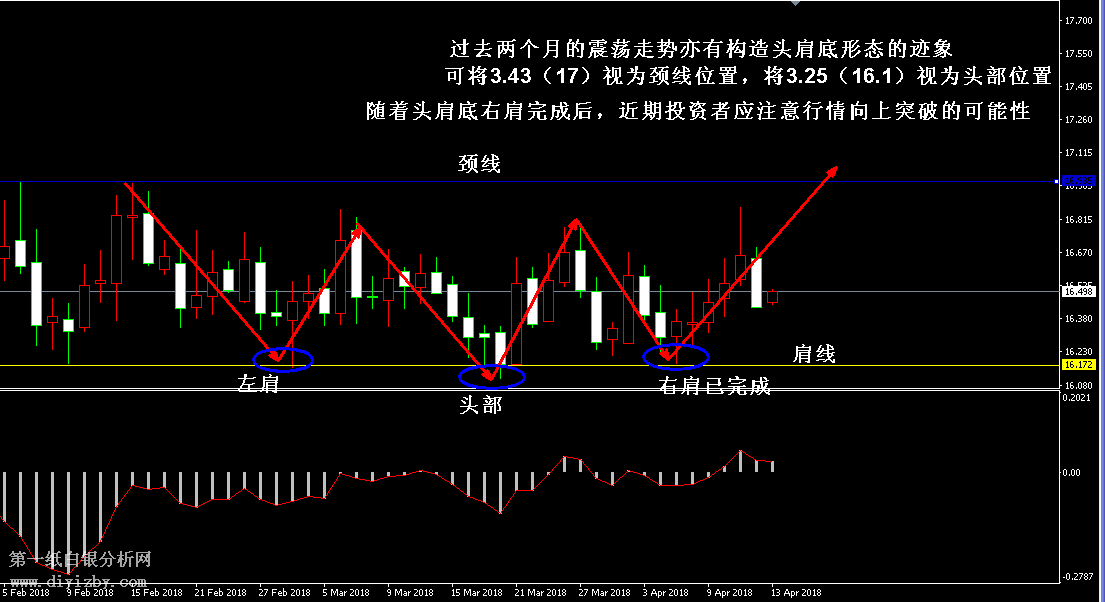 今日下方關鍵支撐位3.3(16.35)、3.27(16.2)、3.25(16.1)、3.18(15.8)、3.14(15.6);今日上方關鍵阻3.41(16.9)、3.43(17)、3.49(17.3)。 提示:技術僅僅是基于概率論和統計學的一種綜合分析手段,絕非預測。所以技術分析是在考慮做好止損的情況下去博取大概率事件,投資不可過于迷信技術分析。(短線操作請一定做好止損,一旦被損,代表分析師基于概率和統計的技術分析不適用于當前行情) 另外,由于紙白銀價格是國際銀價換算而來,而換算過程中涉及到人民幣對美元匯率的變化,即使在國際銀價不變化的情況下,如果人民幣貶值或升值,也會導致紙白銀價格出現變動。因此,我們的分析只采用最新的國際銀價對應的人民幣白銀價格,如與過去分析價格有出入, 投資者應知曉其原因。 1、文中價格為紙白銀價格,括號內為國際銀價,投資者可雙向參考。 2、以上所有價格為工商銀行買入價,即紙白銀低價。進倉點位要再加點差(各銀行點差不一),出倉則不要。 3、第一紙白銀給出的所有建議僅供投資者參考,不作為下單絕對依據,切勿過于依賴。 4、北京時間09:45發布此文章。 5、上一交易日白銀價格分析情況:(4月12日)白銀形成震蕩上漲浪 趨勢已轉強隨時上破