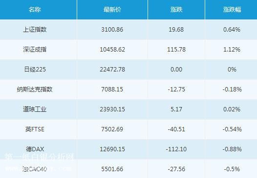 道瓊斯指數5月3日周四收盤上漲5.00點,漲幅0.02%,報23930.01點;標普500指數周四收盤下跌5.94點,跌幅0.23%,報2629.73點;納斯達克指數周四收盤下跌12.60點,跌幅0.18%,報7088.33點。