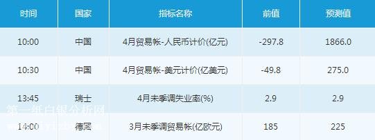周二(5月8日)亞歐時段,投資者早間需關注10:00公布的中國4月貿易帳-人民幣計價、10:30公布的中國4月貿易帳-美元計價,以及13:45的瑞士4月未季調失業率。午后,投資者需關注14:00公布的德國3月未季調貿易帳,以及15:15公布的瑞士美聯儲主席鮑威爾發表講話。