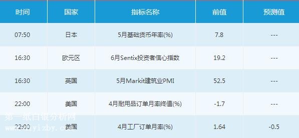 美盤時段,投資者需關(guān)注22:00公布的美國4月耐用品訂單月率終值,及美國4月工廠訂單月率。