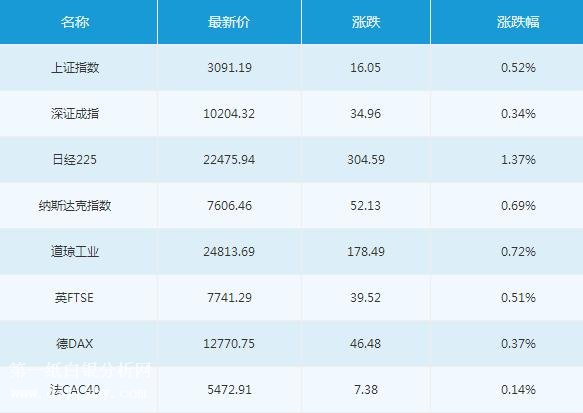道瓊斯指數周一收盤上漲178.49點,漲幅0.72%,報24813.69點;標普500指數周一收盤上漲12.25點,漲幅0.45%,報2746.87點;納斯達克指數周一收盤上漲52.13點,漲幅0.69%,報7606.46點。