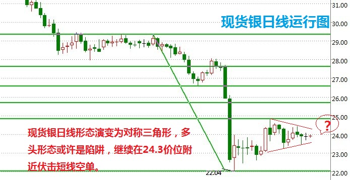 ![]() 今日策略:持續窄幅震蕩走勢,主力資金試圖隱藏自己的行蹤,而市場表現出來的多頭形態有可能是一個陷阱,目前我們判斷主力資金的意圖,所以這個時候不可以輕易入場操作,我們建議投資者依然在24.3價位附近伏擊空單,快進快出絕不戀戰! 基本面情況: 德國工業生產意外上漲,打壓美元 德國公布,3月工業生產較前月上升1.2%,2月修正為上升0.6。路透調查預估德國3月工業生產較前月下滑0.1%。 數據令歐元區短期內降息的預期降溫。美元兌歐元大跌,提振貴金屬和工業金屬。 ETF持金量降至2009年初以來最低 SPDR Gold Trust 黃金持倉量減少0.42%,至2009年初以來最低的1,057.79噸,黃金價格周三大漲逾1%,三個交易日內首次收高,因美元下滑以及強勁的實貨黃金買盤扶助抵消黃金支持上市交易基金(ETF)持金量持續下滑的影響。 技術面理由: ![]() 備注:小心多頭陷阱,繼續在24.3價位打伏擊,注意不做死空頭,該止損時不能含糊! 中線策略: 4月15日判,現貨白銀徹底失守26美元關鍵支撐,強勁的拋壓引發市場的恐慌性拋售,多頭情緒遭到嚴重的破壞,修復則需要相當長的一段時間,預計在短時間內銀價依然會依照慣性保持下跌走勢,當然盤中可能會存在反彈走勢,但是反彈的力度有限,對于中線投資者來講,我們認為現在依然不是布局中線多單的最好時機,投資者需要進一步耐心等待市場企穩以及空頭走勢反轉信號的出現! 第一紙白銀分析網(m.maomaopao.com)北京時間10:39監測數據,工行紙白銀價格4.73元/克。 本文作者昨日白銀價格分析請看:5月8日白銀自助交易系統分析建議