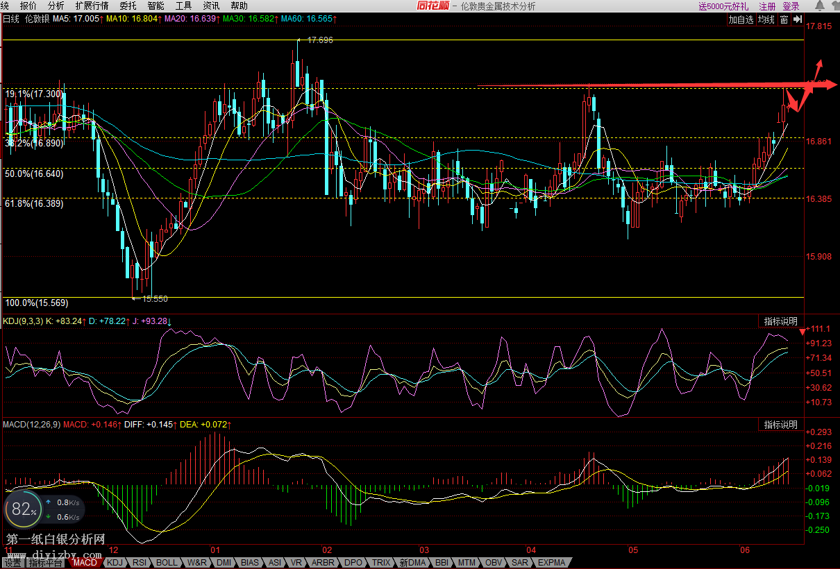 圖:白銀日K線(參考指標MACD)