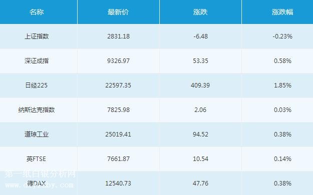 美股三大股指均錄得上漲。標普500指數收盤上漲3.02點,漲幅0.11%,報2801.31點;納斯達克指數收盤上漲2.10點,漲幅0.03%,報7825.98點;道瓊斯指數7月13日(周五)收盤上漲94.50點,漲幅0.38%,報25019.41點。本周,美國股市標普500指數上漲1.5%,道瓊工業指數上升2.3%,納斯達克指數升1.79%。