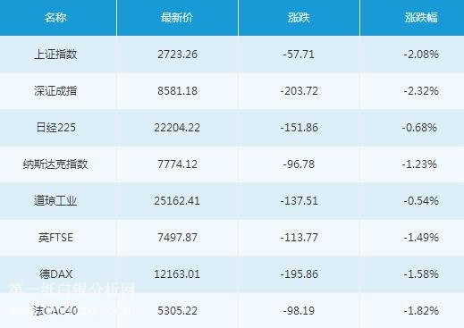 周三因騰訊財報不及預期拖累科技股市場情緒,基本金屬原油價格全線重挫,美三大股指普跌。標普500指數下跌21.59點,跌0.76%,報2818.37點。道瓊斯工業平均指數下跌96.80點,跌1.23%,報7774.12點。納斯達克綜合指數下跌137.50點,跌0.54%,報25162.41點。