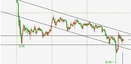 就技術面而言,白銀在經(jīng)歷了周一突發(fā)式的非正常行情演化之后,就目前的走勢看似乎有回歸常態(tài)波動的跡象,白銀在大逆轉之后未能進一步向上延續(xù),從前交易時段的市場情況看,受阻的區(qū)域在之前形成的箱體下方位置,大約在22.8一帶,從整體看白銀目前在22.8下方運行仍表明白銀的上漲屬于修正的概率較大,后面在整體依舊偏空的背景下,主要是關注本次上漲的延續(xù)時間和延續(xù)的力度,就技術上而言22.8的位置對于白銀的階段行情的性質(zhì)有較為重要的意義,需重點關注。
