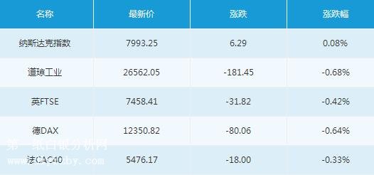周一美股三大指數(shù)漲跌不一,標(biāo)普500和道瓊工業(yè)指數(shù)下跌,納斯達(dá)克指數(shù)微幅收漲,因美中實施新一輪貿(mào)易關(guān)稅,打擊了上周達(dá)成解決方案的希望,投資者等待美聯(lián)儲政策會議,預(yù)期將宣布升息。道瓊斯指數(shù)收跌181.50點,跌幅0.68%,報26562.05點;標(biāo)普500指數(shù)收跌10.30點,跌幅0.35%,報2919.37點;納斯達(dá)克指數(shù)收漲6.30點,漲幅0.08%,報7993.25點。