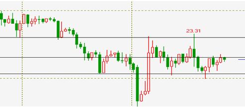 就技術面而言,白銀在最近三天開始呈現橫向寬幅震蕩的行情走勢,目前值得關注的主要是22.2、22.6和23.3三條橫向的箱體運行軸線,就當前整體趨勢結構來看,白銀整體偏空的態勢仍未改變,目前的震蕩格局仍屬于整理過程中的階段性修復過程,還不宜輕言市場方向的改變,但就目前的小周期操作而言,可以重點參照目前已經逐漸形成的箱體震蕩格局。 現貨白銀技術研判: 周線圖:下降三角形水平位26.05向下破位,長線逢高做空。 日線圖:單針探底后的震蕩,中線觀望。 小時圖:寬幅震蕩格局,短線追漲殺跌。 【交易指南】 國際白銀:長線逢高做空,中線觀望,短線追漲殺跌。