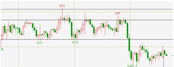 就技術(shù)面而言,之白銀在經(jīng)歷的上周五的大跌之后,在技術(shù)上已經(jīng)有效跌破的前面維持很久的22.2——23的箱體震蕩格局,隨后的三天運行區(qū)間在21.4——22區(qū)間,這個區(qū)間很明顯已經(jīng)完全在之前的大箱體只下了,白銀最近三天的橫向震蕩屬于弱勢的整理過程,從大的市場結(jié)構(gòu)的偏空的基本態(tài)勢再繼續(xù)的延續(xù),目前決定白銀后續(xù)發(fā)展速率的曲折的主要原因除了白銀自身的技術(shù)因素外,黃金的發(fā)展變化將變得非常重要,這是目前需要特別關(guān)注的一點。